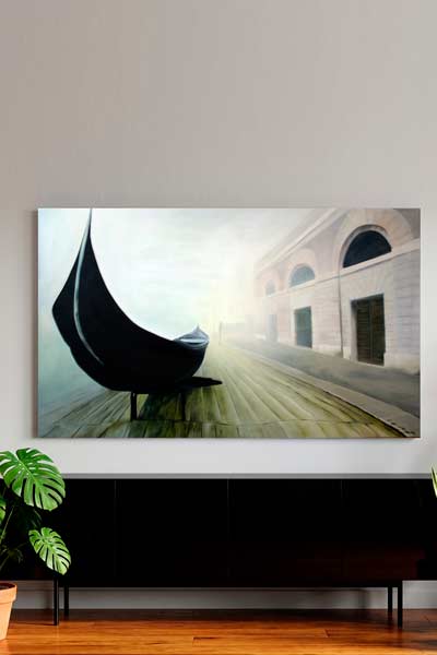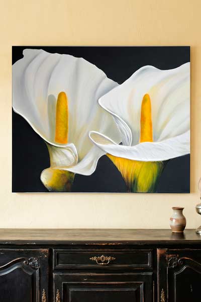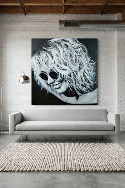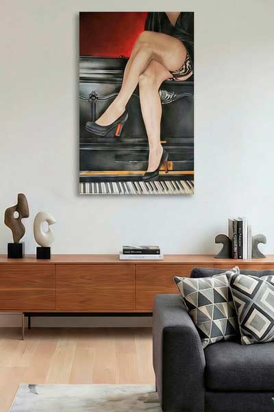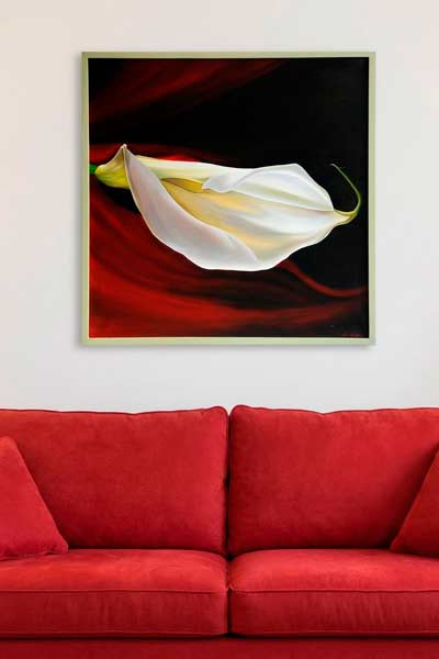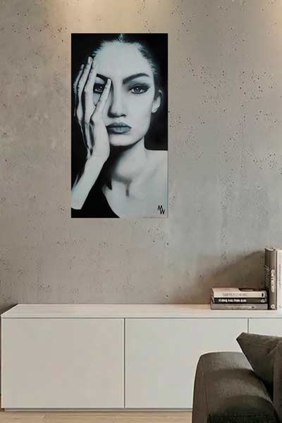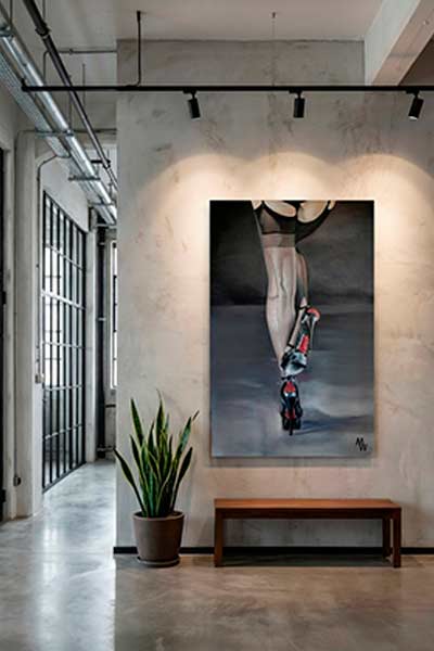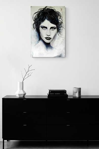 Meine Bilder wirken für mich am stärksten in einem passenden Ambiente, denn Kunst lebt vom Zusammenspiel mit ihrer Umgebung, sie verwandelt Räume, verleiht ihnen Tiefe und wird zum Blickfang innerhalb eines gelebten, persönlichen Umfeldes. Und Format und Größe der Bilder lassen sich besser einschätzen.